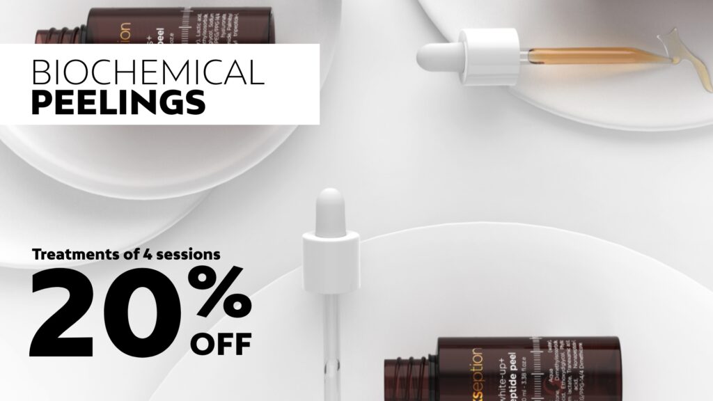 The biochemical peeling is ideal for achieving a radiant and even complexion — take advantage of our exceptional offers to prepare your skin for the cold season.