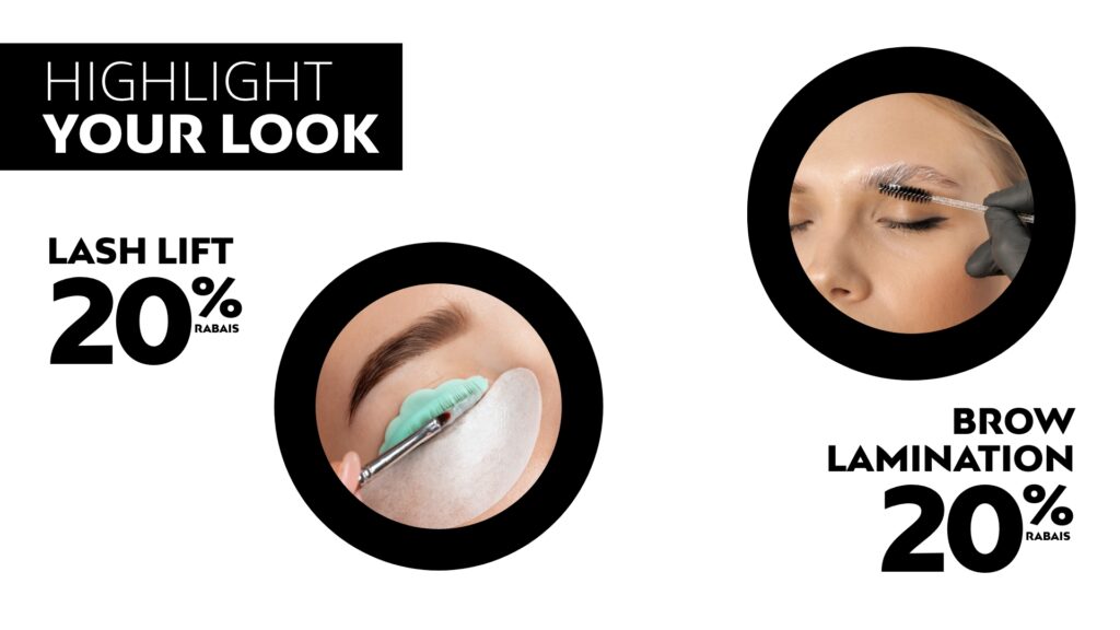 The lash lift curls your lashes for a semi-permanent “mascara” effect, while the brow lamination disciplines and densifies your brows for a refined and structured look.